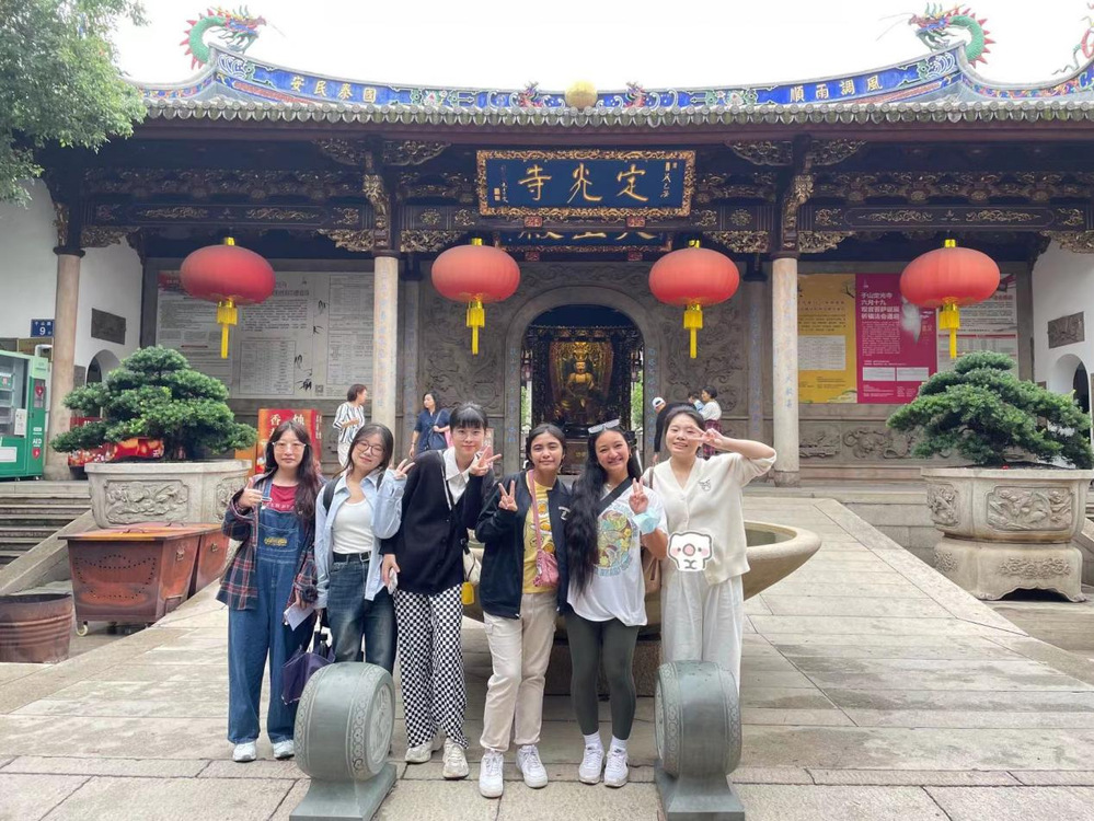 随后她们来到旅途的第二站——五一广场,学生们向圣心女院的学子们介绍了五一广场中央的毛主席像以及五一广场会在国庆时举办升旗的活动仪式以此庆祝祖国的生日。紧接着她们前往本次活动的第三站,同时也是最后一个景点——白塔,途中,她们还碰到非常接地气的相亲角,我院学子们热情地向美国学子们介绍了特别的中国式相亲方式,美国学生们听后表示非常有趣。紧接着,她们来到白塔前的定光寺,在寺庙前拍下照片,进入寺庙,前往目的地白塔。在白塔中,我院学子们向美国学子们详细介绍了白塔深厚的历史背景和文化底蕴。