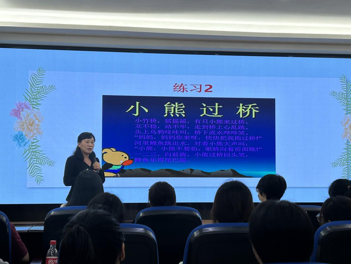 讲座过程中吴园长还进行了儿歌和故事演绎示范,生动展示了文学作品演绎中技巧的使用与情感的融入,博得了全场听众多次热烈的掌声。
