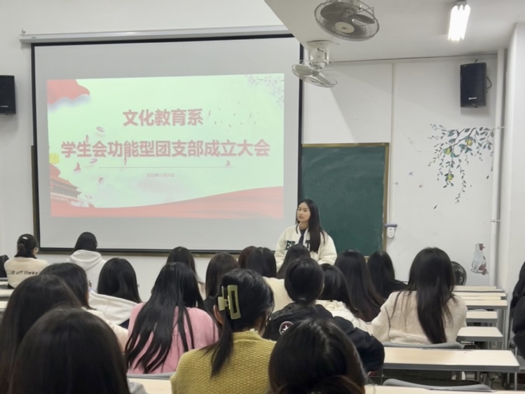 为深入学习贯彻习近平新时代中国特色社会主义思想,把习近平总书记关于青年工作的重要思想落实到团的全部工作和建设之中。响应学院号召,深化共青团改革和全面从严治团要求,持续将我系学生会改革向纵深推进。文化教育系学生会于2023年11月26日在培训楼101教室召开福建华南女子职业学院文化教育系学生会功能型团支部成立大会。