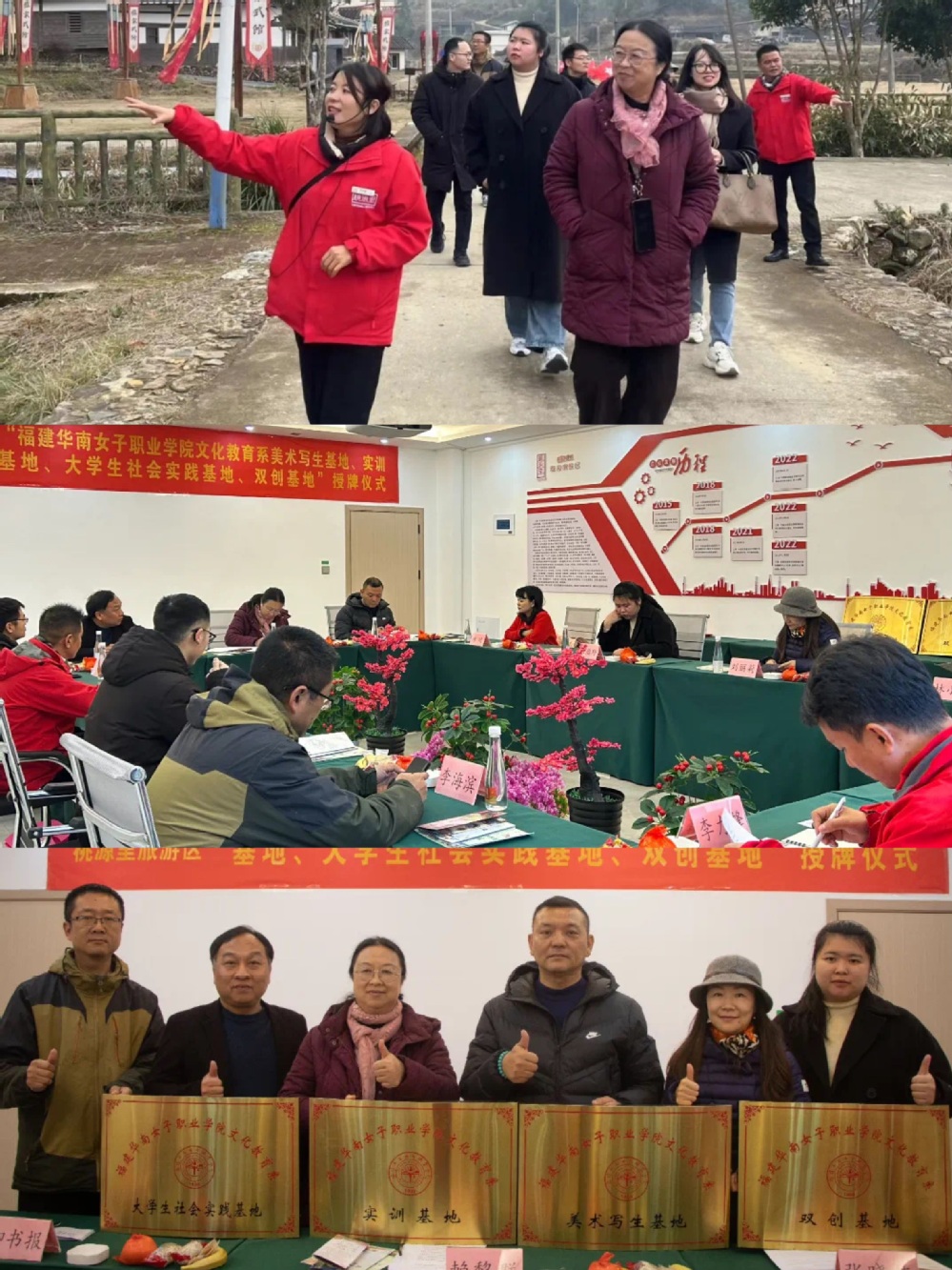 1月27日,文化教育系一行在桃源镇进行写生路线考察,此次写生路线覆盖桃源镇全域,景区负责人对基地建设进行了简要分享。为更好地促进校企合作,路线考察后,双方就发展方向及目标开展座谈,双方进行深入交流,希望能够充分发挥学校与企业双方优势,为学生实习、实训提供更多的实践空间,共同推动人才培养和社会进步。座谈会上,文化教育系与福建小风车投资开发有限公司就开展合作共建达成了共识,举行美术写生基地、实训基地、大学生社会实践基地、双创基地签约暨授牌仪式,桃源镇镇长柳书报,桃源里旅游度假区董事长张晓伟,文化教育系主任赖黎群等出席仪式。