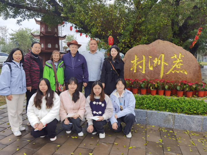 本次活动首先来到蔗洲古厝,受到村负责人黄杜海先生的热烈欢迎,他向我们介绍了谢洲境太颐宫并讲述了这里的历史故事和未来规划。在场的学生们一边认真聆听黄先生的精彩介绍,一边还听着中教翻译,观摩了中英文翻译整个过程。