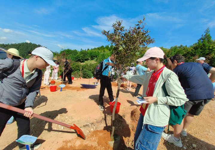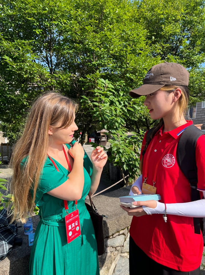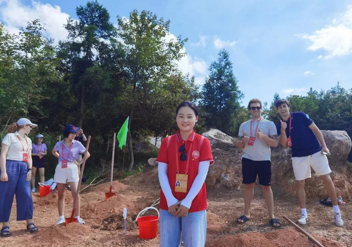 姜海宁:非常高兴能有机会参加这么盛大的活动。在活动中最让我印象深刻的就是我们第十组参观柳杉王公园,大家一起观看具有千年历史的柳杉树,我能用英语熟练讲解柳杉王的故事和文化。其次,我们还一起种树,外国友人十分配合、积极参与,我们一起亲手种下许多“友谊之树”,期待来年枝繁叶茂。