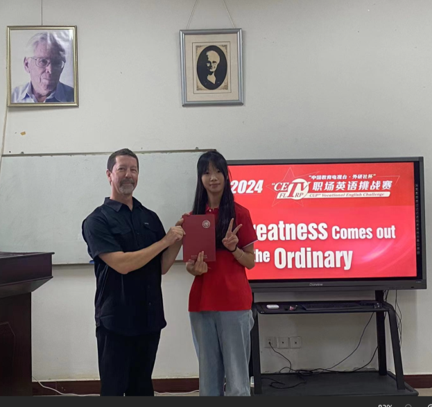 首先是普吉湾学生作为英文演讲比赛的评委,为9位参赛学生评分。应用英语专业有6位选手参加比赛。文教系主任赖老师主持比赛,比赛主题是2024年“中国教育电视台·外研社杯”的英文演讲主题:Greatness comes out of the ordinary (伟大出自平凡)。每位选手演讲完毕,要回答考官(普吉湾大学Stockdale 教授担任)的问题。应英专业6位选手表现优秀,她们结合学院的发展历史和杰出校友的故事,形象生动地表达了自己对演讲主题的理解,并能迅速回答教授提问。比赛第二轮最具挑战性,选手将随机抽取一条出自《论语》的原文,用英文讲解三分钟,并接受考官提问。为了这场比赛,学生需要花费大量时间和精力提前熟悉《论语》中的名句和英文表达,备赛的过程,便是最有意义的学习过程。有一位选手幸运地抽到“有朋自远方来, 不亦悦乎!”的名言,她机智地用普吉湾师生的来访作为例子完美解释了这句话的含义,将比赛氛围推向高潮,也拉近了现场观众和美国师生的距离。经过激烈角逐,应用英语专业三位学生从九位选手中脱颖而出获评前三名。