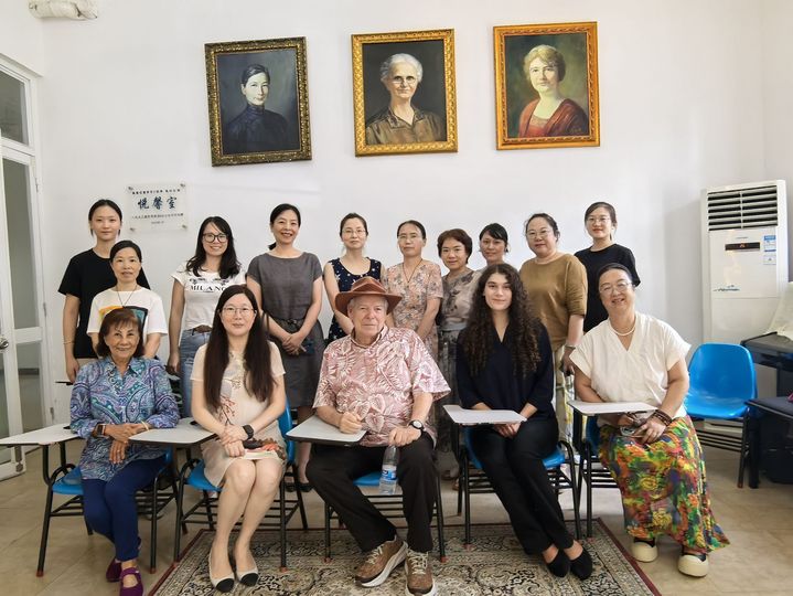 2024年9月20日,应用英语专业于专家楼会客室举办中外教师联合教研会议,出席会议的院系领导有福建华南女子职业学院副校长张秋蘋,教务处处长潘少芳及文化教育系主任赖黎群,外籍教师代表有福建省友谊奖、福州市荣誉市民获得者资深外教Gordon Trimble携夫人Sonia Trimble以及新外教Cecilia Louise Cobbs,同时应用英语专业全体教师共同出席了会议。