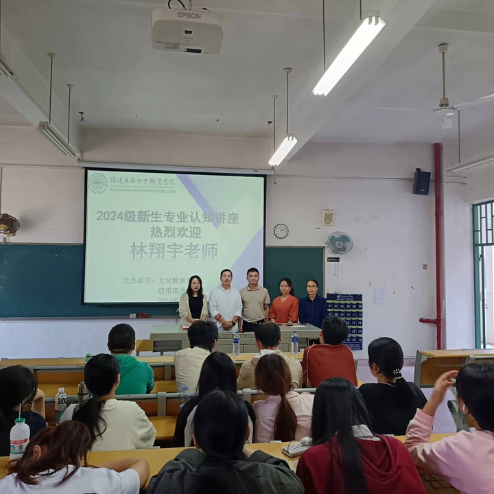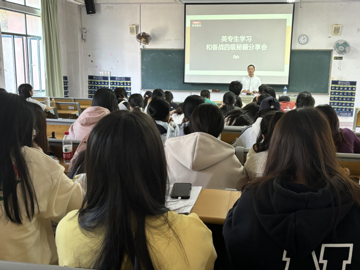 2024年11月6日,文化教育系应用英语专业面向2024级新生开展第二次专业认知讲座,邀请嘉宾林翔宇老师以“英专生学习和备战四级秘笈分享会”为主题展开演讲和互动。应用英语专业主任林小敏主持活动并做嘉宾介绍,专业教师严涵和袁媛共同出席。