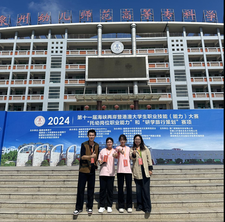 第十一届海峡两岸暨港澳大学生职业技能大赛“托幼岗位职业能力大赛”决赛于10月25日至27日在泉州幼儿师范高等专科学校举行,高职组共有32所全国各地的院校,64名选手晋级线下决赛,其中只有16所院校能够获得最终奖项。此次决赛备赛时间紧,比赛内容涵盖知识面广,给备赛的师生带来了一定的挑战。在专业师生的共同努力下,最终,早教专业毛欣梅、姚子睿两位老师指导的23级早教专业李书萍、洪缘彬同学实现了零的突破,夺得了三等奖的好成绩。