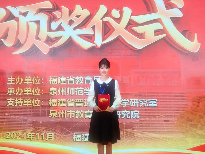 2024年11月16日,福建省第十一届高校师范生教学技能比赛在泉州师范学院落下了帷幕。我院选派的2022级周子慕同学,充分运用探究式教学,以扎实的专业知识、精湛的教学技能和良好的综合素质,赢得了现场评委和老师的高度赞誉。在16所本科院校,20所专科院校,共计45名选手,在本科、专科同台竞技的情况下,以93.33分夺得学前教育组第一名的优秀成绩,为我院赢得了荣誉。