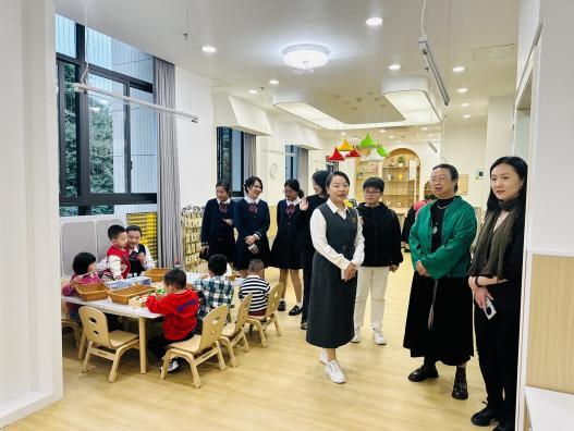 签约仪式前,陈宁园长等幼儿园教师带领赖主任一行参观了园所的基本环境,陈园长向我们介绍了幼儿园的办园理念、特色课程、近期主题活动等基本情况。该园为福州市示范园,以培养有特性的幼儿、有特质的教师、发展有特色的园区为办园宗旨,营造“爱、自由、美、愉悦”为本的育人环境,秉承“以身体之、以情验之、以思悟之”的教育理念。