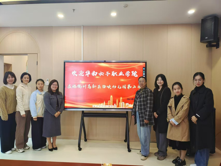 2024年11月29日,我院文化教育系主任赖黎群,带领学前专业及早教专业负责人来到福州高新区海峡幼儿园第二园,开展“访企拓岗”工作。许园长带领文教系一行人参观园所,介绍办园理念和园所特色,大家被园所的一些特色环创吸引并展开了讨论。