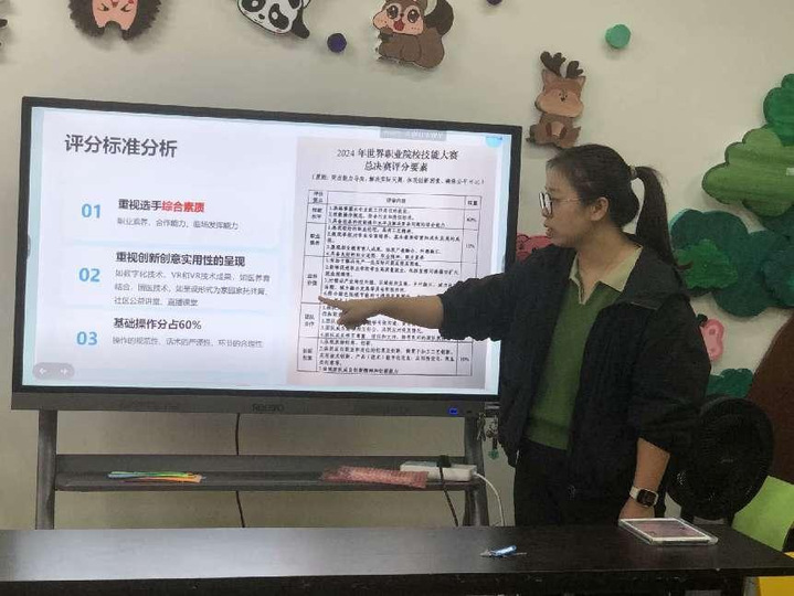 在教育教学不断改革与创新的背景下,早教专业于2024年12月4日下午,成功召开了一场富有成效的教研会。此次会议聚焦世界职业院校技能大赛中婴幼儿照护赛项的经验分享,以及讨论早教专业相关课程如何结合大赛要求改进教学内容。