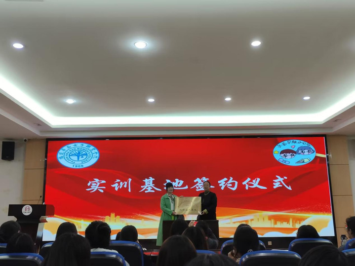 讲座以文化教育系实训基地签约仪式作为开场,此次是文教系首次将行业专家请进学校,在校内举行了庄重的签约仪式和实训基地授牌仪式。行业专家深入校园,参观走访学生的学习环境的同时,能够全方位地了解目前学生的学习和生活情况。
