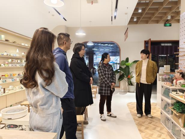2024年12月12日星期四上午,我院文化教育系主任赖黎群,美术教育专业主任李海滨以及相关课程负责教师前往福建冶盒子文化艺术有限公司,开展“访企拓岗”交流活动。在福建冶盒子文化艺术有限公司负责人陆沛梵、李清、林阳老师陪同下参观了公司的艺术创作空间和活动展厅,了解公司品牌的艺术理念、技术特色及市场定位。