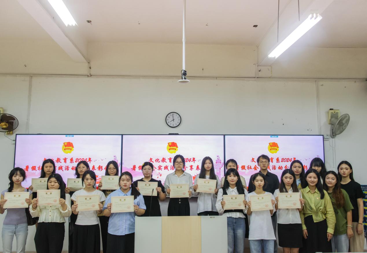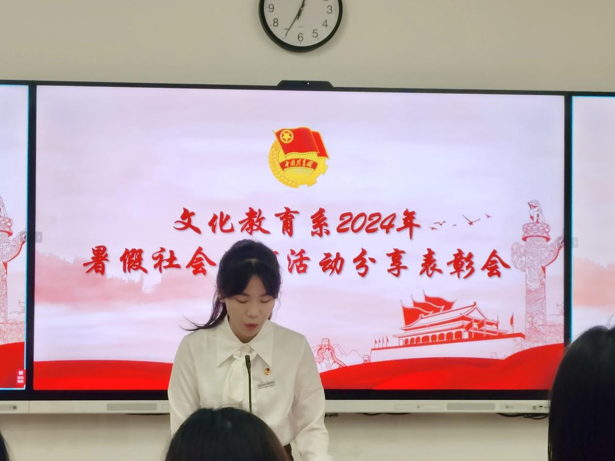 为学习贯彻习近平文化思想,深入实施“时代新人铸魂工程”, 帮助广大学生上好理论与现实相结合的“大思政课”。文化教育系学生利用暑假,通过学术研究、调研考察、志愿服务等方式开展社会实践,进一步增进对中华民族优秀传统文化的学习理解,推进文化自信自强。为了能够更好地分享总结,做好典型宣传、激励同学们广泛参与、发挥育人实效,10月13日,我系开展2024年暑假社会实践活动分享表彰活动。