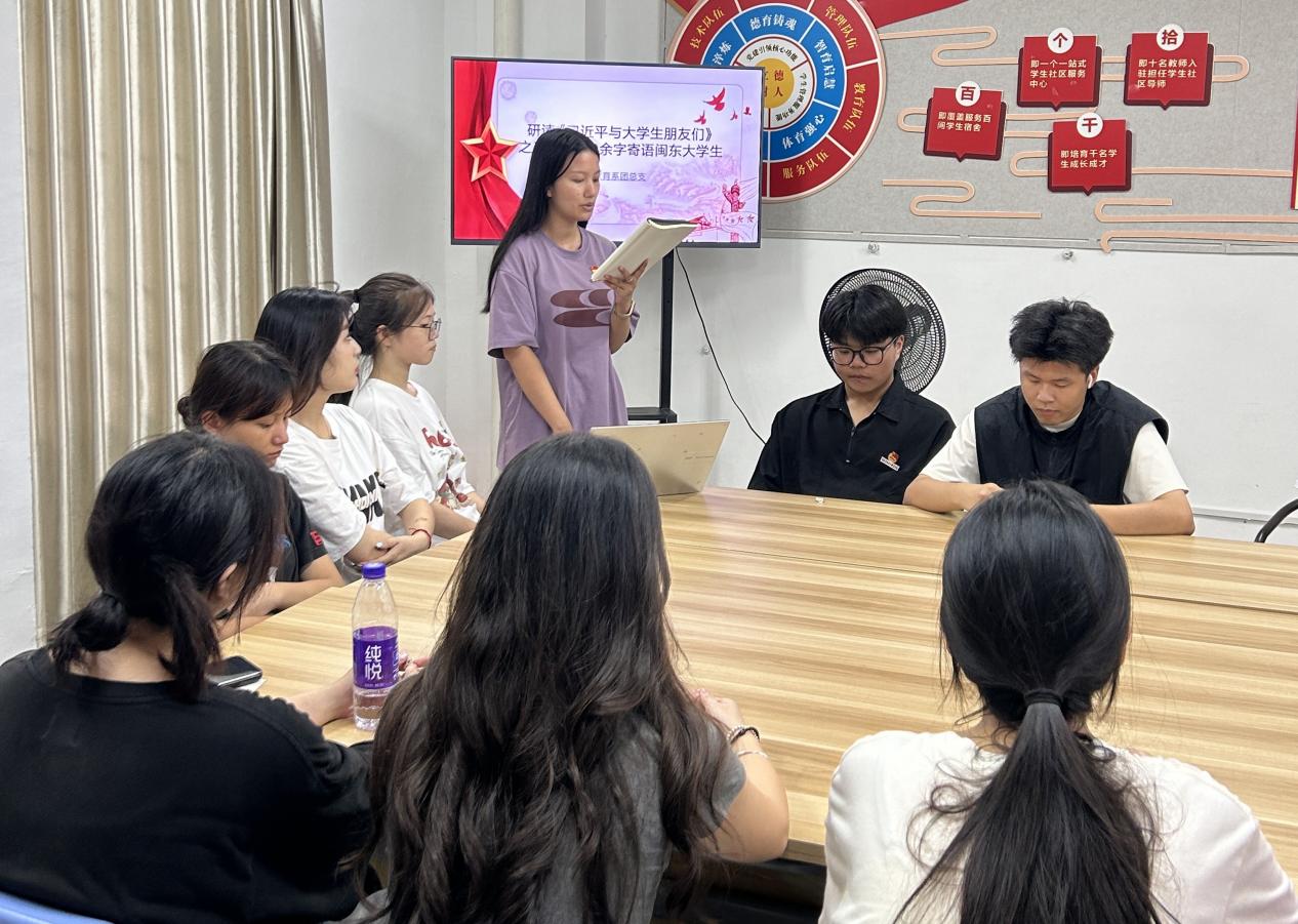 活动伊始,团总支书记李宛蓉领学了《习书记180余字寄语闽东大学生》这一章节内容,共同探讨书中蕴含的深刻内涵和实践意义,以一场深刻的读书分享会拉开了序幕。通过影视资料、相关视频的观看,同学们对于书中蕴含的深刻内涵与实践意义有了进一步的了解,随之同学们围坐一堂,开始共同探讨各自的心得体会与理解。书中那些温暖的故事、深刻的见解,激发了同学们对未来的无限憧憬和奋斗的决心。