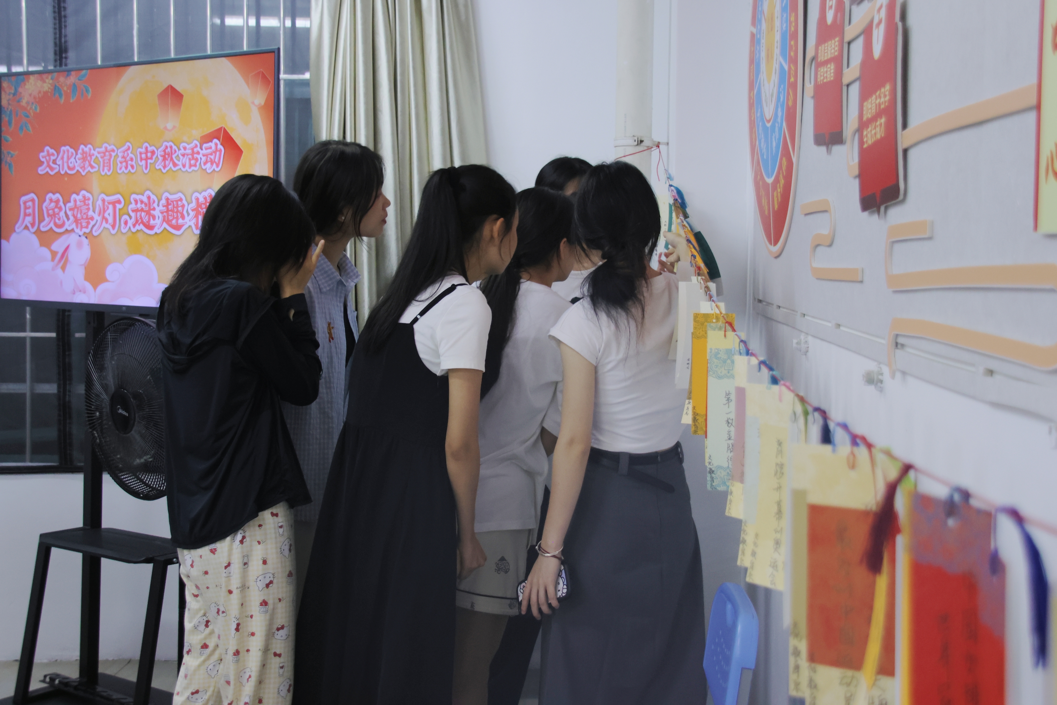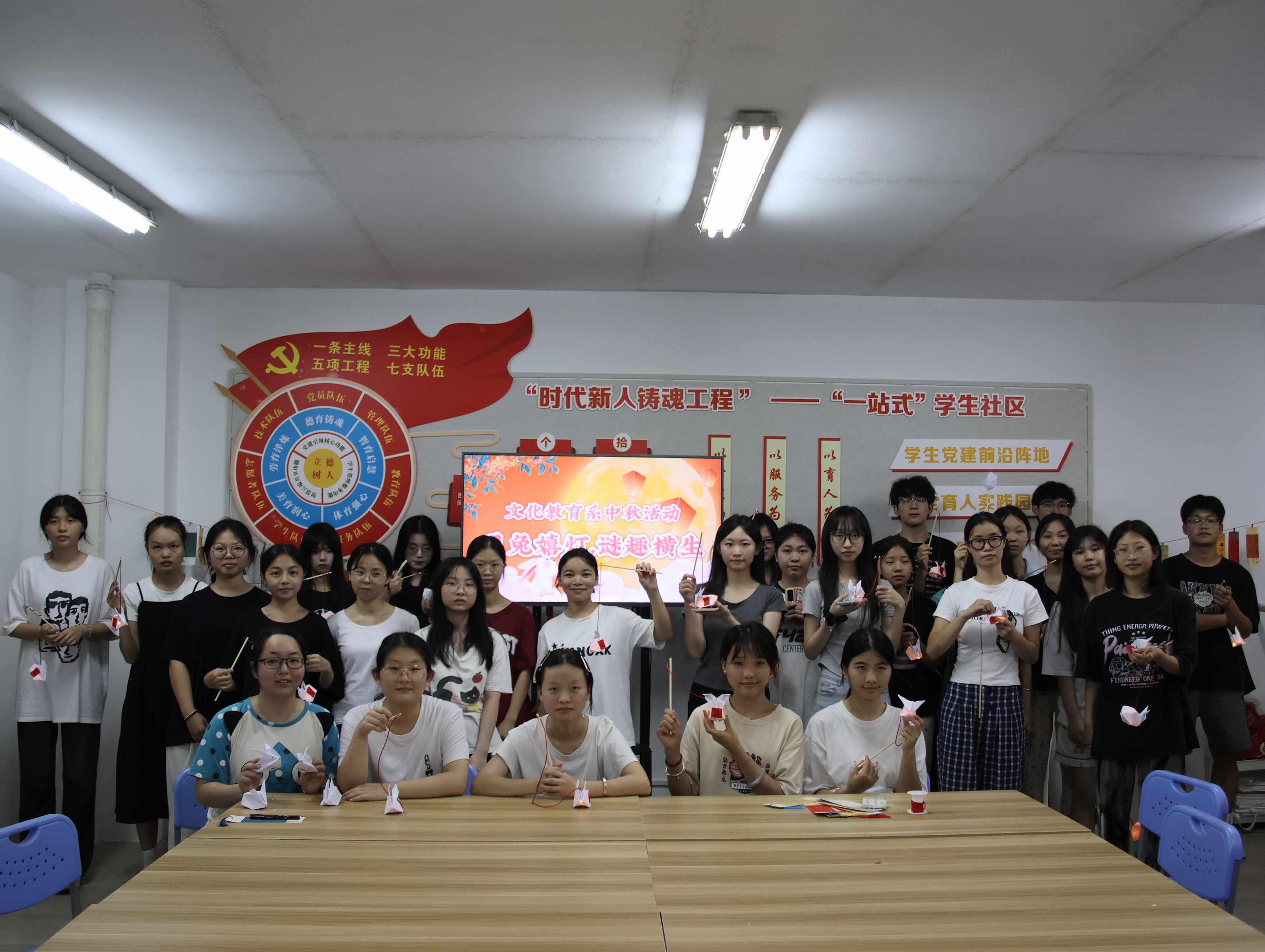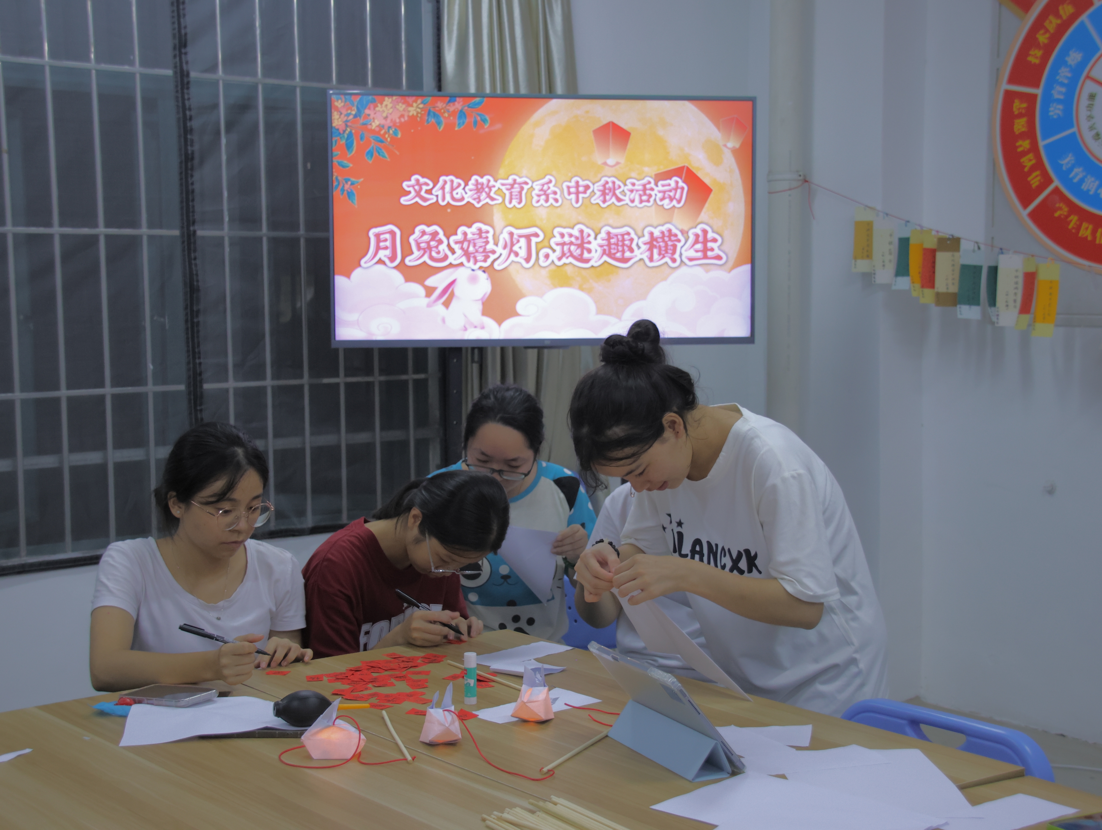 为营造浓厚的节日氛围,文化教育系在一站式学生社区服务中心举办了中秋猜灯谜、做花灯的活动,活动吸引了许多学生踊跃参与。