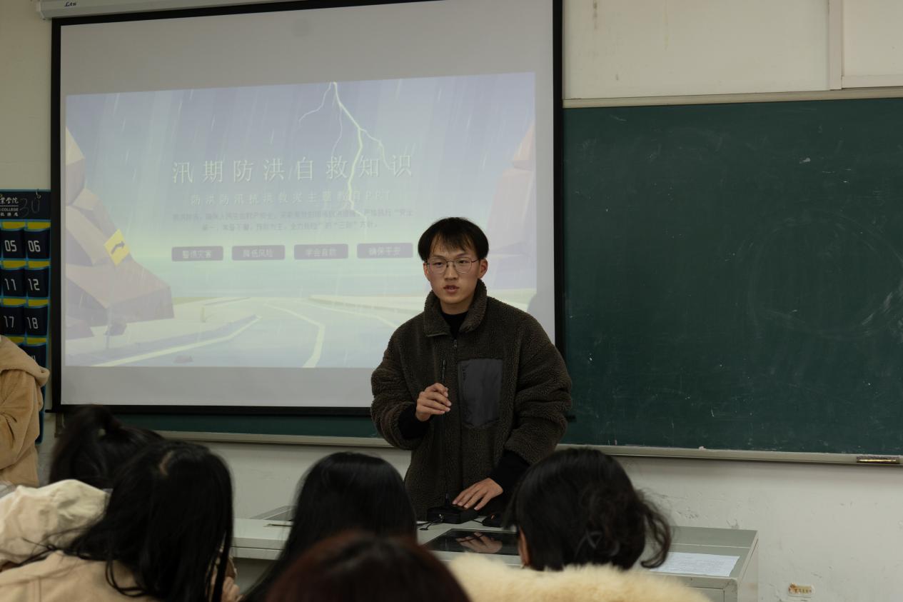 为进一步增强学生的防汛防灾意识,切实掌握汛期或紧急情况发生时的防灾技能及处理方式,提高学生防汛防灾和自救自护能力,文化教育系孙士雨和郑羽老师于3月13日下午在4-201召开以全国防汛防灾日为主题的“防汛防灾危险疏散活动”主题班会,为文化教育系学生开展防灾技能教育。