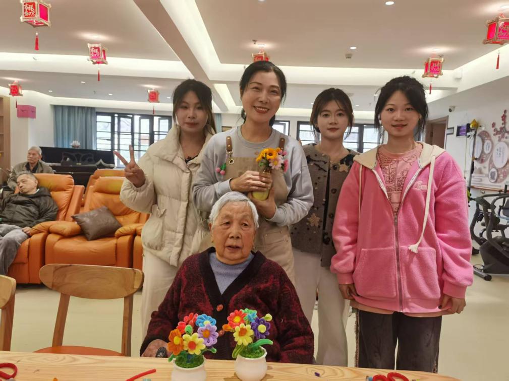 马秀发、吴梅玉两位老教师从教半世纪,她们用实际行动诠释教育家精神,是学校的宝贵财富,也是新时代学生们学习的榜样。美术教育专业的四位同学带着崇高的敬意和诚挚的问候踏入敬老院,和老人家们一起动手做手工,那一刻欢声笑语在每个角落流淌,老人们脸上洋溢着幸福的笑容。