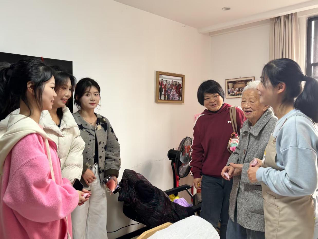 尊老敬老是中华民族的传统美德,爱老助老是全社会的共同责任。为弘扬和传承中华传统美德,自觉承担爱老助老的社会责任,2025年3月13日上午,文化教育系美术教育专业的四位同学前往百龄养老院,探望华南106岁老教师马秀发老师和96岁吴梅玉老师,表达敬意与关怀,传递尊老爱老的温暖。