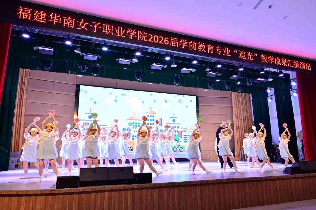 当璀璨灯光点亮舞台,福建华南女子职业学院迎来了梦想与希望交织的华章。2026届学前教育专业的学子们以专业为舟、热忱为帆,在"追光"教学成果汇报演出的舞台上,演绎出视觉震撼与心灵共鸣的双重交响。这场精心编排的演出不仅是教学成果的立体呈现,更是教育情怀的生动诠释。准教师们以童心为墨,在光影律动中勾勒幼教事业的美好蓝图,用专业技能编织与儿童对话的彩虹桥梁。当教育初心遇见青春理想,我们见证了一场关于传承与创新的温暖对话,这正是师范精神最美的绽放时刻。