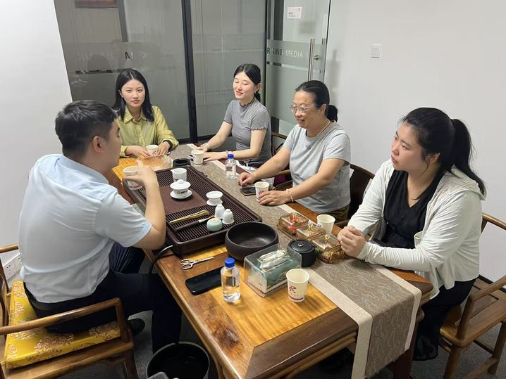 蓝枢传媒科技有限公司负责人陈锦涛热情接待了校方团队。在座谈会上,陈锦涛详细阐述了公司的业务布局以及所取得的创新成果,全方位展现了企业的实力与特色。随后,赖黎群主任着重介绍了福建华南女子职业学院文化教育系独特的办学理念与育人成果,指出此次访企拓岗活动的核心目标在于构建校企之间更为紧密且稳固的合作关系。一方面,期望通过深度合作,为学生提供丰富且优质实习与就业机会,让学生在实践中进一步打磨专业技能,积累实战经验,实现从校园到职场的平稳过渡与无缝衔接;另一方面,也旨在为企业发展注入新鲜活力,输送更多契合岗位需求的高素质专业人才,实现校企双方优势互补、互利共赢。