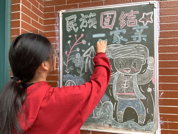 在本次活动中,同学们热情高涨、积极参与,以黑板报为载体,用多彩的画笔描绘出中华民族一家亲的美好画面,展现出同学们对中华民族共同体的深刻理解和坚定认同。黑板报内容丰富多样,涵盖中华民族优秀传统文化、各民族团结奋进的故事以及新时代民族团结政策等,不仅丰富了同学们的知识储备,更在校园内营造出浓厚的民族团结氛围。
