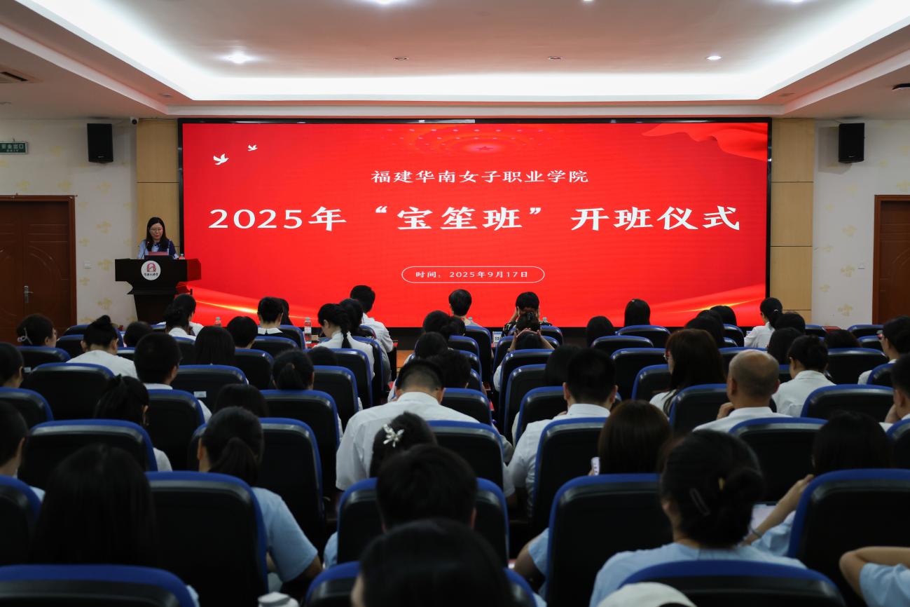 9月17日下午,福建华南女子职业学院2025年“宝笙班”开班仪式在余宝笙学术报告厅举行。学校理事长、全体党政领导班子,相关部门负责人,各系主任、党总支书记,以及“宝笙班”导师、学员参加仪式。仪式由校党委副书记张秋蘋主持。