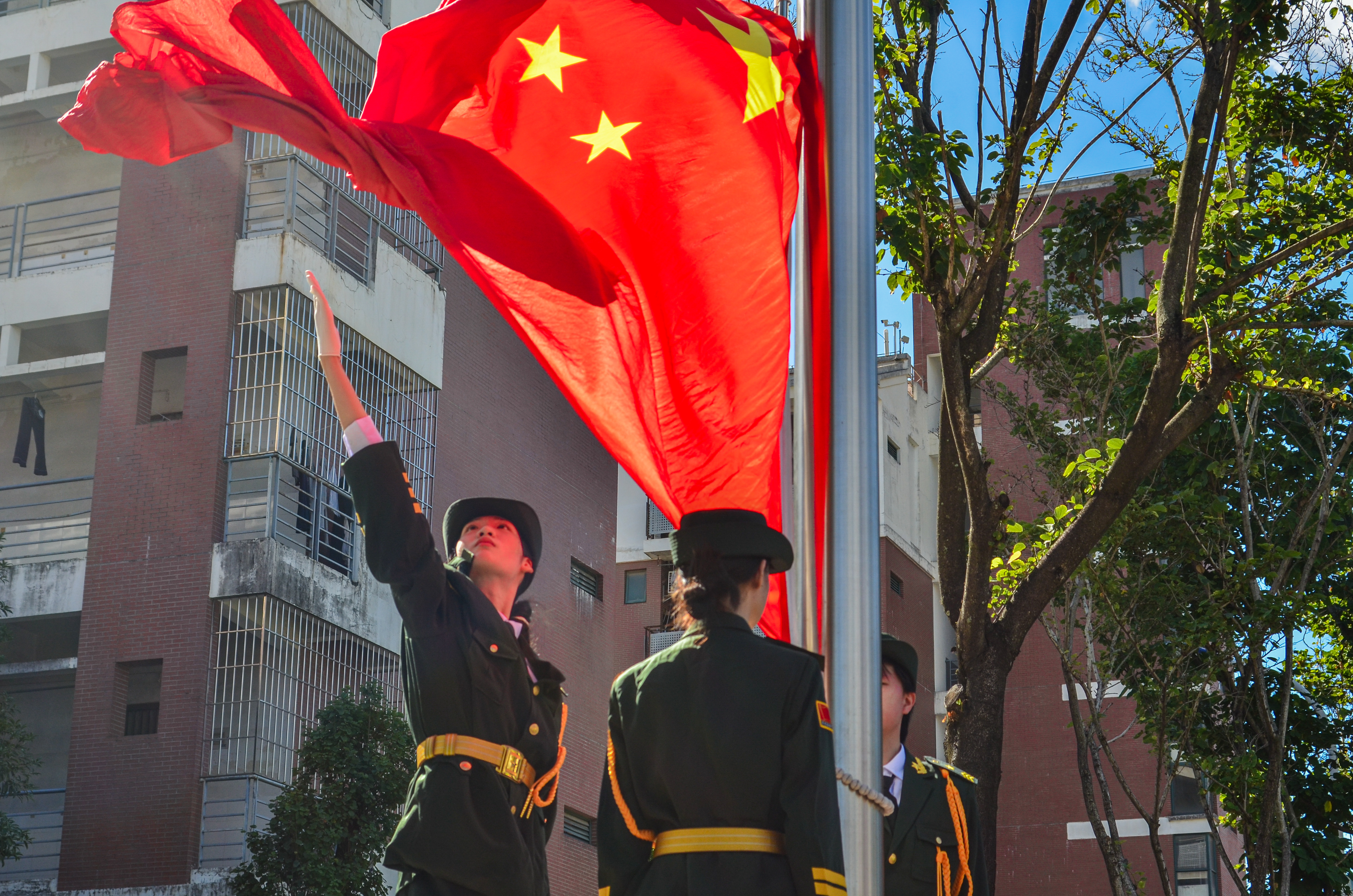 在全体师生的注目下,五星红旗冉冉升起,伴着雄壮的国歌,2025级新生开学典礼正式拉开帷幕。