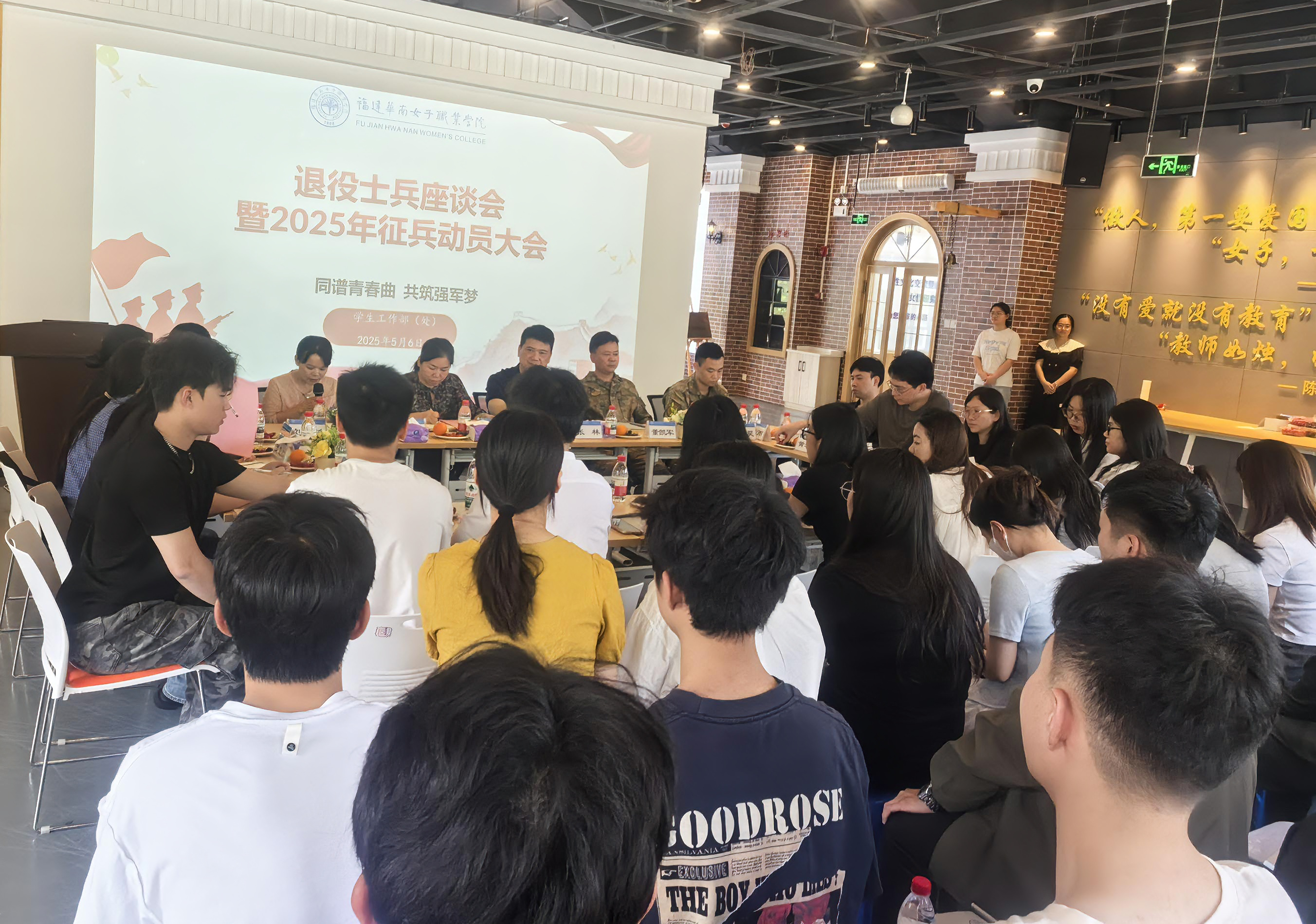 为鼓励退役士兵学生继续发扬军人优良作风,同时激励适龄青年学生积极投身国防事业,5月6日下午,我校学生工作部(处)征兵工作站组织开展“同普青春曲 共筑强军梦”退役士兵座谈会暨征兵动员大会。台江区人民武装部副部长董凯军、干事张永昊、参谋翁化雨,我校党委书记张林、副书记吴岚葭、各系总支书记、全体毕业班辅导员及学生代表参加了此次会议。会议由学生工作部(处)长陈晴主持。