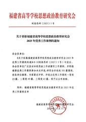 近日,福建省高等学校思想政治教育研究会公布《关于表彰福建省高等学校思想政治教育研究会2025年优秀工作...