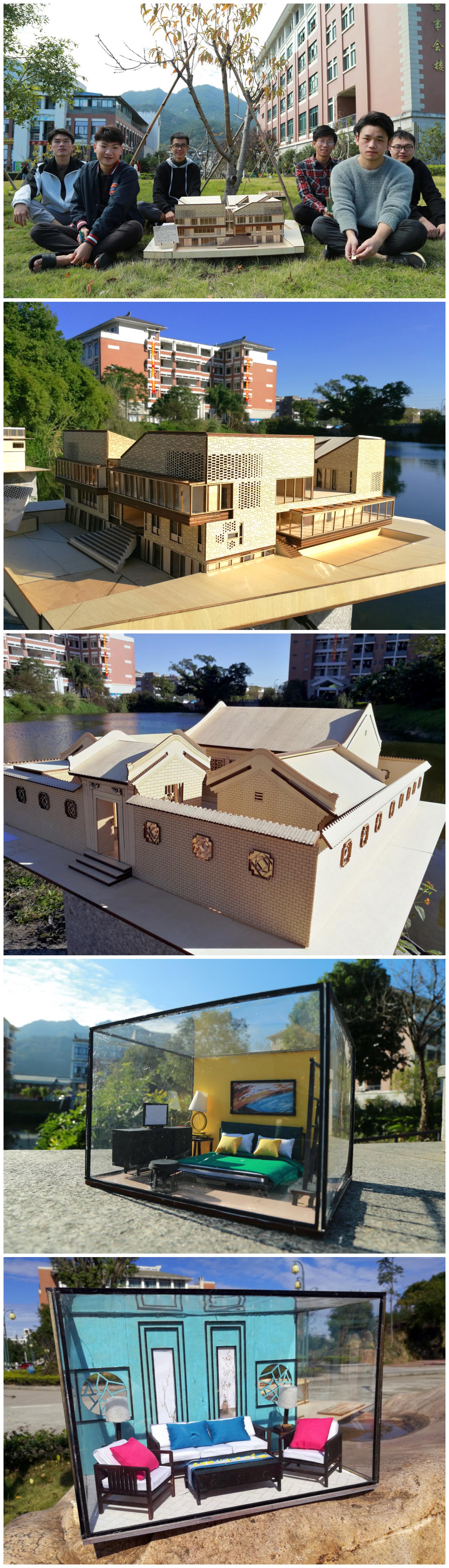 为庆祝华南女院成立110周年,17级建筑室内设计专业的师生筹备一场作品展,作品包含装饰挂画、装饰挂毯以及建筑模型、家具模型等,其中家具模型依托家具设计课程,是学生对家具产品的造型、比例和材质的初次探究。通过对家具模型比例的设计、部件的拆分和组装,对家具的尺寸设计和造型设计有一定的了解。
