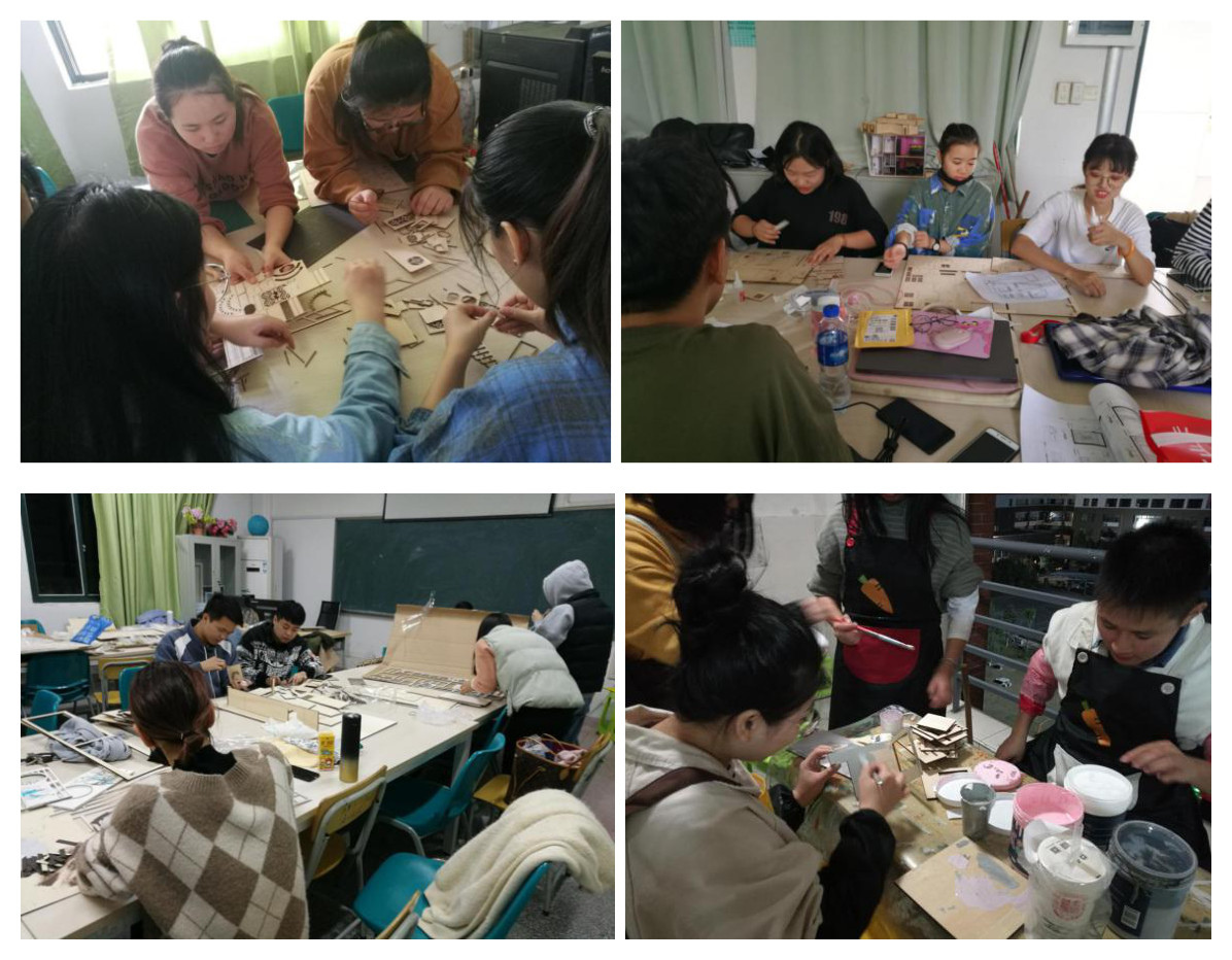 本次大赛以课程作业的形式展开,17级建筑室内设计1班、2班学生在专业教师陈倩玲的指导下,以分组的形式进行分工合作。从方案设计、材料加工、到最后部件组装,每一组的成员都投入了极大的热情和心血。通过本次的比赛对提升学生的空间想象力、空间分割设计、家具比例设计、色彩和材质的设计与运用以及审美鉴赏能力有一定的提升。