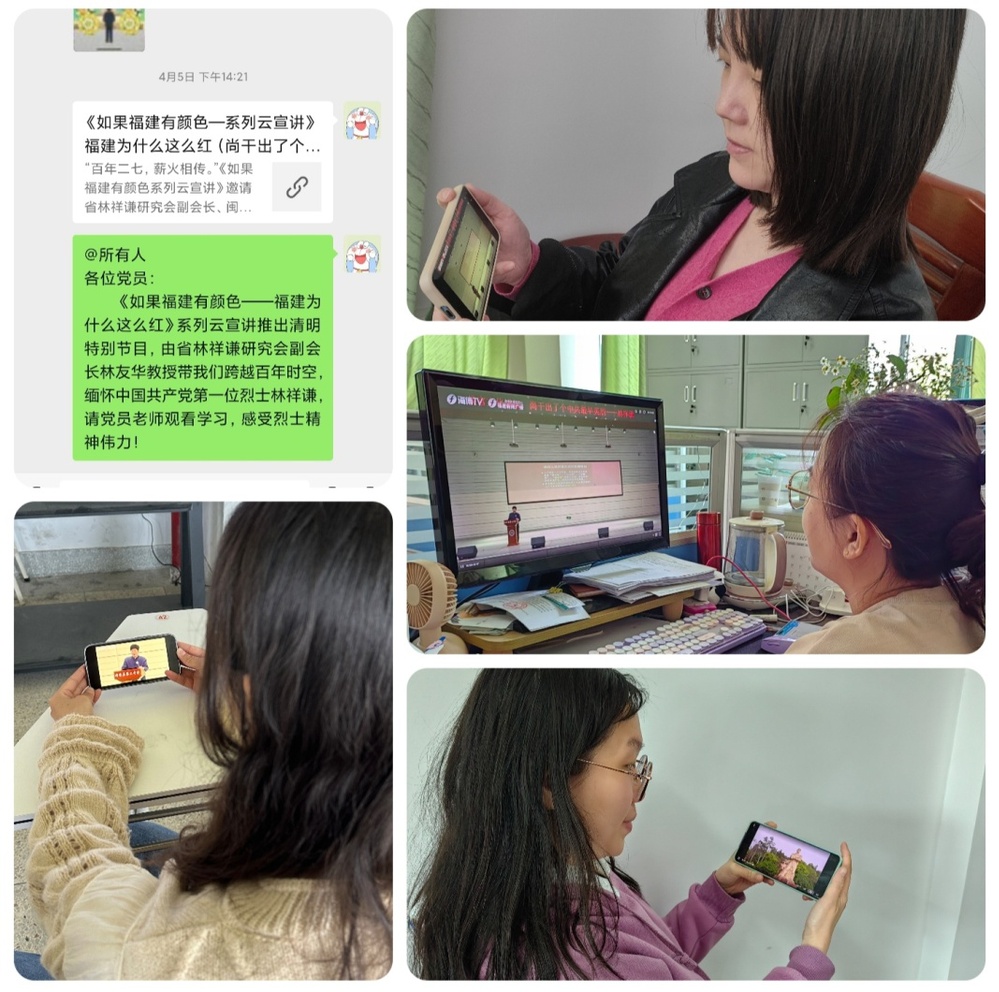 4月5日上午,支部全体党员参加由中共福建省委文明办开展的“2023清明祭英烈”活动,通过活动专题页面,浏览阅读革命先烈们的光辉事迹,为先烈献花,抒写感言,致敬英烈。下午,全体党员观看学习云上课堂《福建为什么这么红》专题讲座,重温中国工人阶级杰出代表、中国工人运动先驱者、中国共产党第一名烈士——福州闽侯籍革命先烈林祥谦同志的光辉事迹,党员们一起听故事悟初心,谈梦想促发展。