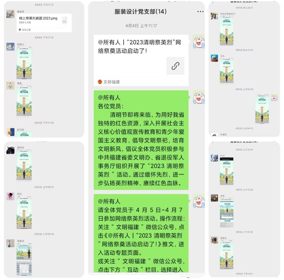 服装设计党支部充分发挥党建引领作用,通过组织党员参与活动,引导支部党员深切缅怀革命英烈,致敬光辉历程,传承红色基因,凝聚精神力量,使支部党员始终牢记为党育人,为国育才的使命,牢记立德树人的根本任务,进一步弘扬英烈精神,构建了崇尚英雄争做先锋的良好氛围。