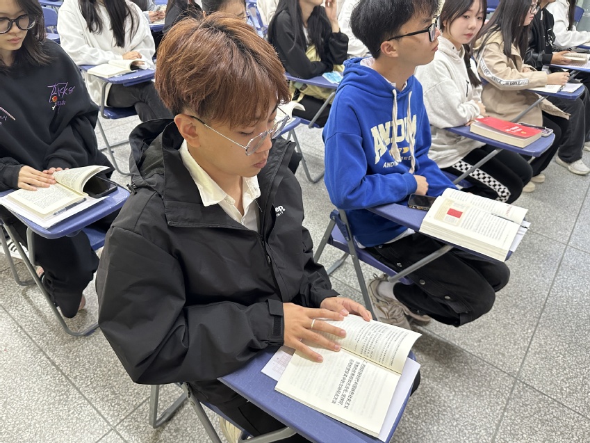 活动中,同学们在学习《习近平著作选读》、《习近平新时代中国特色社会主义思想专题摘编》、《论党的青年工作》等著作重点篇目后,分享了自己对习近平新时代中国特色社会主义思想的理解和认识,从不同的角度入手,深入探讨了这一思想的时代背景、核心要义、实践路径等。通过书中生动鲜活的案例结合自我解析,使同学们更加全面地了解这一思想的重要性和影响力。