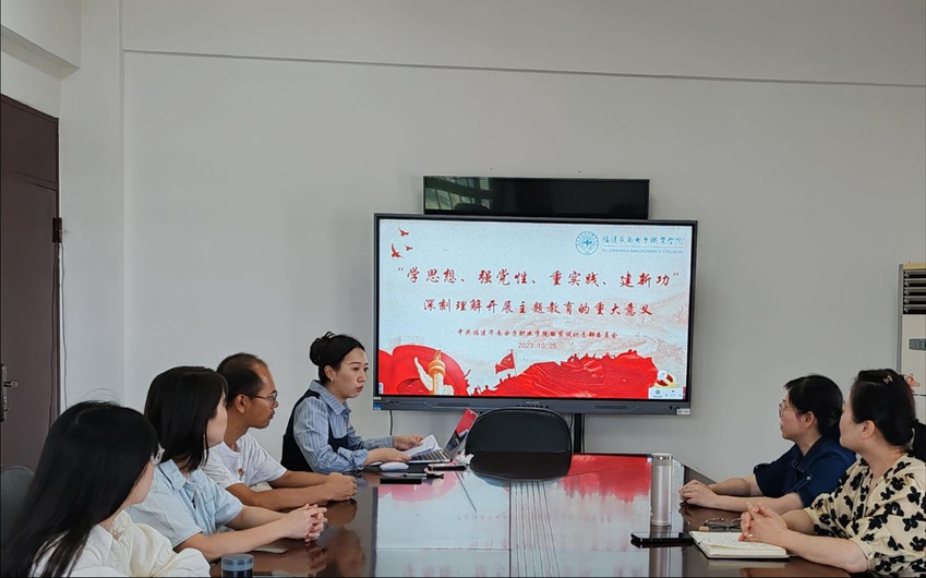 2023年10月25日,服装设计党支部开展题为“学思想、强党性、重实践、建新功”深刻理解主题教育重大意义的专题学习会,旨在深入贯彻落实习近平新时代中国特色社会主义思想和党的二十大精神,推动全体党员进一步增强政治意识、大局意识、核心意识、看齐意识,坚定不移地走中国特色社会主义道路,为实现中华民族伟大复兴的中国梦而努力奋斗。