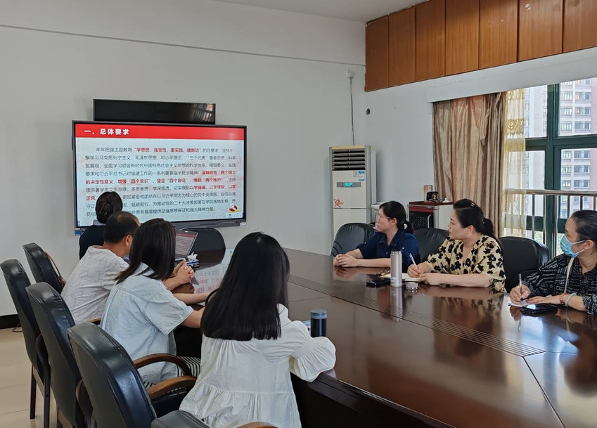 会议中,党支部书记赵文敏老师首先带领大家学习了习近平总书记在党的二十大开幕式上的重要讲话和中共中央关于《深化新时代教育评价改革的意见》,以及《福建华南女子职业学院深入开展学习贯彻习近平新时代中国特色社会主义思想主题教育实施方案》、《福建华南女子职业学院主题教育理论学习计划》等文件。随后,各小组进行了深入地交流研讨,大家纷纷表示要紧密团结在以习近平同志为核心的党中央周围,不断增强“四个意识”、坚定“四个自信”,始终与党中央保持高度一致。最后,黄磊晶副院长、党总支副书记陈蓓荔老师分别对本次主题教育理论学习进行了总结,强调要将学习成果转化为实际行动,不断提高教育教学水平和服务质量,为服装与服饰设计专业、人物形象设计专业培养高素质人才做出贡献。