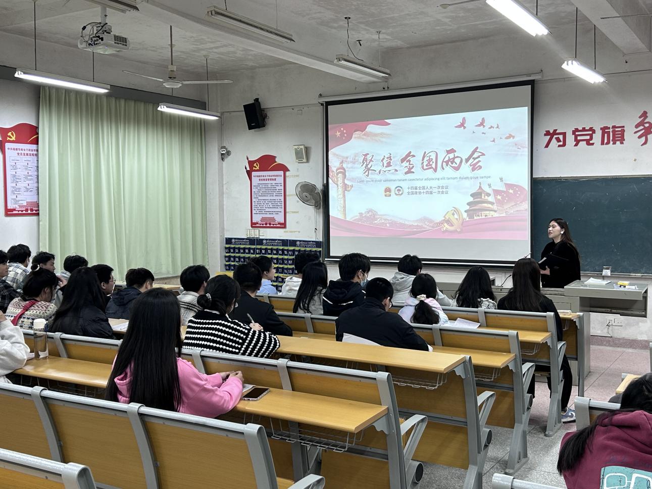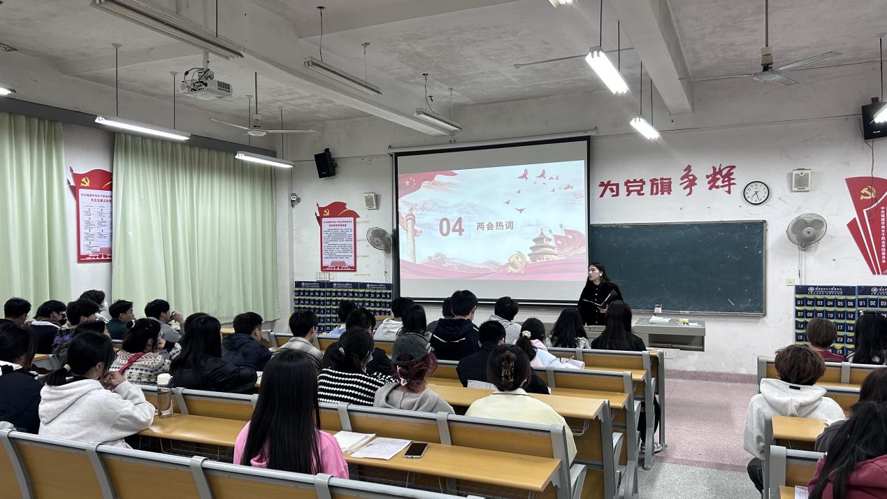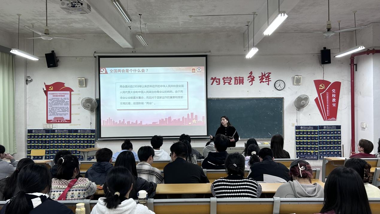 会上,吴文佳老师就两会知识,两会热词进行讲解,同学们认真学习,在会议上聚焦两会热点,畅想未来发展。