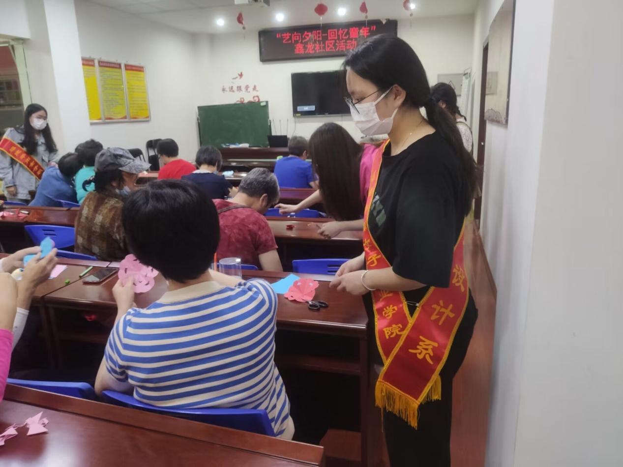 为弘扬中华优秀传统文化,传承敬老、爱老、孝老的传统美德,践行志愿服务精神,2023年3月——6月,艺术设计系团总支书记吴文佳带领系部辅导员和“青柠檬”志愿服务队走进金洲社区、鑫龙社区,开展“艺向夕阳”社区志愿服务系列活动。