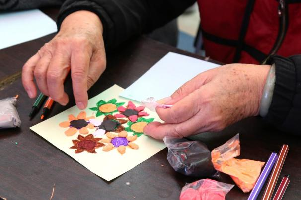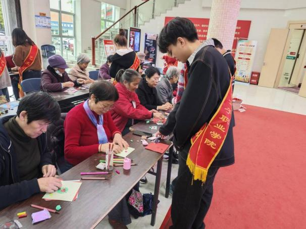 接下来,志愿服务队的“艺术工匠”们为老人们带来涂鸦创作和黏土塑型的乐趣。他们为每位老人准备了画笔和黏土工具,并引导老人们根据自己的喜好和想象进行设计,画出色彩斑斓的花朵。在创作的过程中,老人们仿佛回到了童年时光,脸上洋溢着天真无邪的笑容。