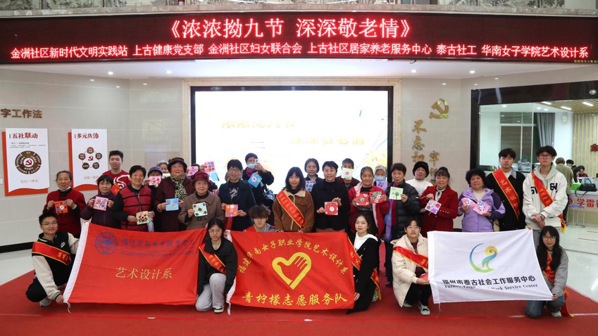 2024年3月7日,学院艺术设计系“青柠檬”志愿服务队以传统拗九节为契机,赴福州市仓山区金山街道金洲社区居委会开展“浓浓拗九节,深深敬老情”主题志愿服务活动,旨在弘扬中华民族尊老、爱老的传统美德,为敬老院的老人们送去温暖与关怀。