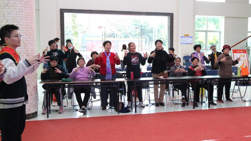 首先,志愿服务队的“拇指操行家”们为老人们展示了拇指操的基本动作,并耐心指导他们如何正确地进行手指运动。老人们跟随着节奏,认真地摆动手指,完成了一系列的动作。老人们不仅锻炼了手指灵活度,也体会到身心的放松和愉悦。