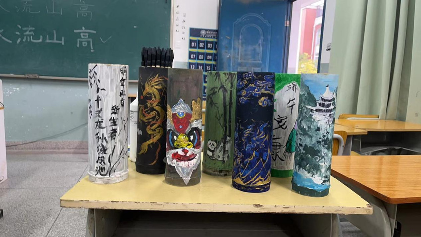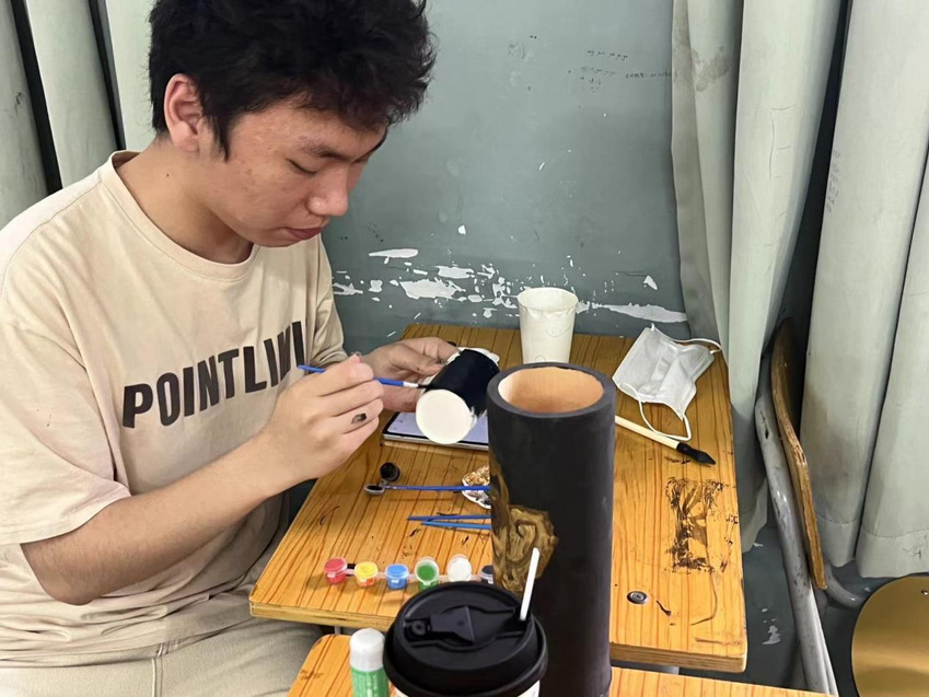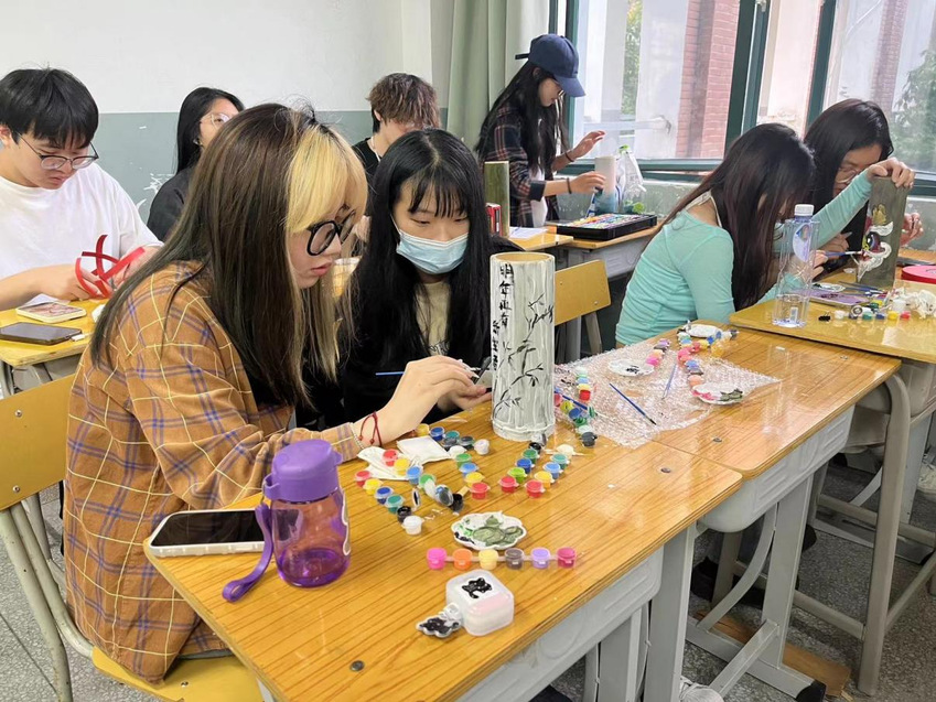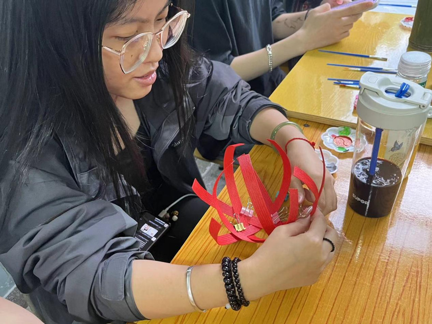 本次活动结合艺术设计系“文创中的思政课”,通过文创手工的方式,组织同学们了解蹴鞠球与投壶的制作工艺,使用纸藤进行文创制作蹴鞠球,并将中华传统纹样与竹筒相结合进行投壶创作。手工蹴鞠球、投壶制作完成后,同学们将成品带到校园操场,开展蹴鞠与投壶活动。同学们热情高涨,操场上欢乐连连。