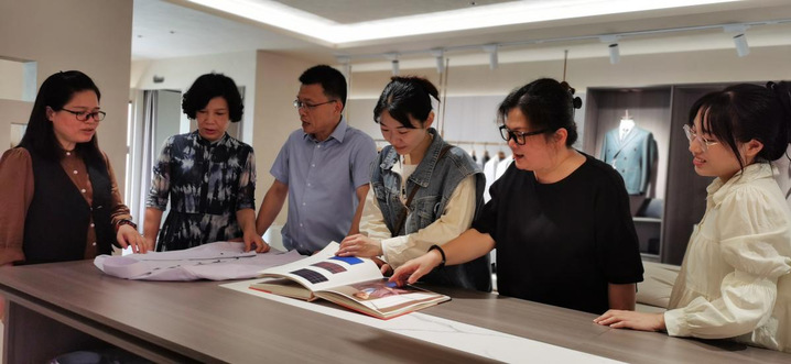 在公司董事长华彬彬女士带领下,专业一行5人参观了商务服装定制中心、时尚职业装展销中心、生产车间等企业环境及智能化设备,了解公司的生产与经营方向等。参观过程中,公司负责人与系主任林友爱副教授、专业主任兼专业带头人林晓副教授、专业骨干教师陈永、青年教师庄舒婕、杨慧婷就校企共研项目、人才培养培训、学生就业等进行了广泛深入的交流。