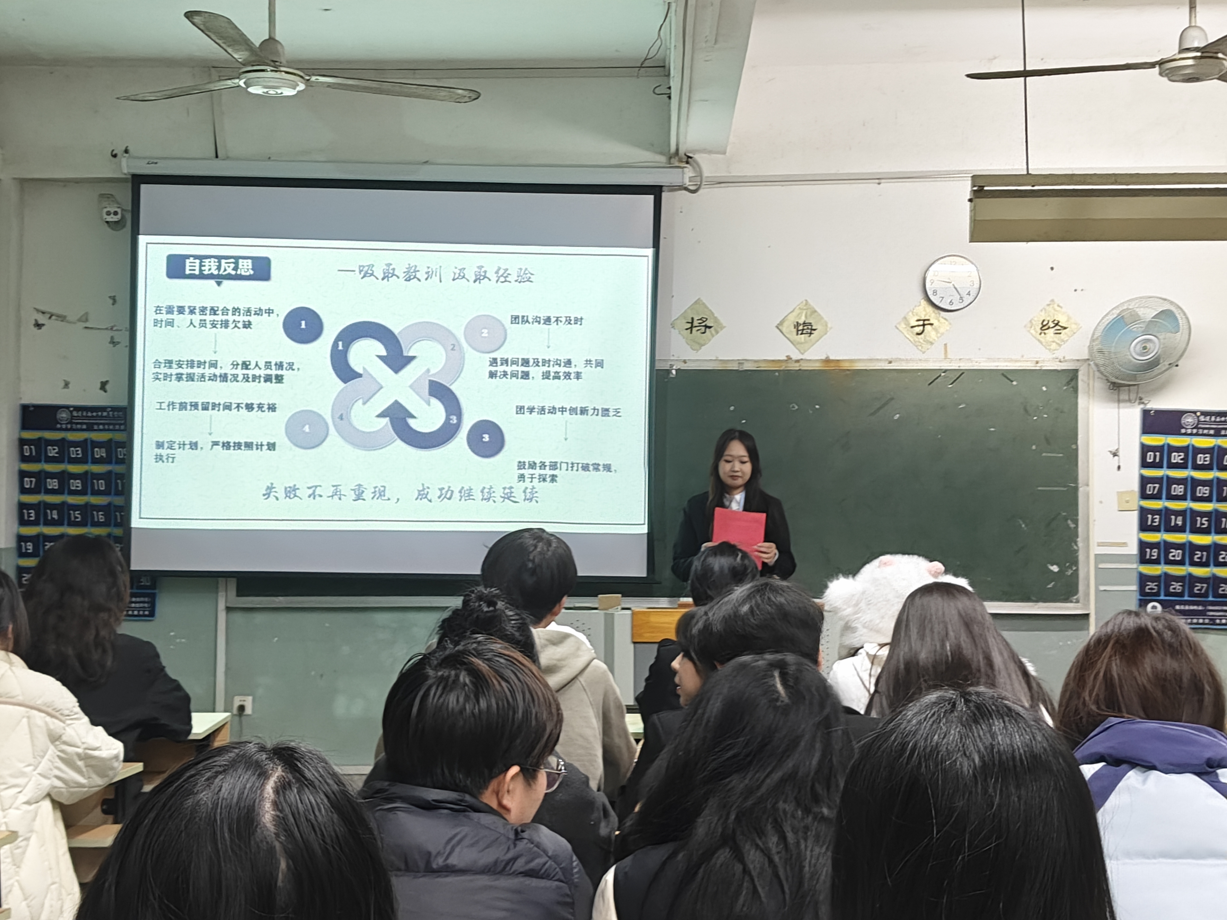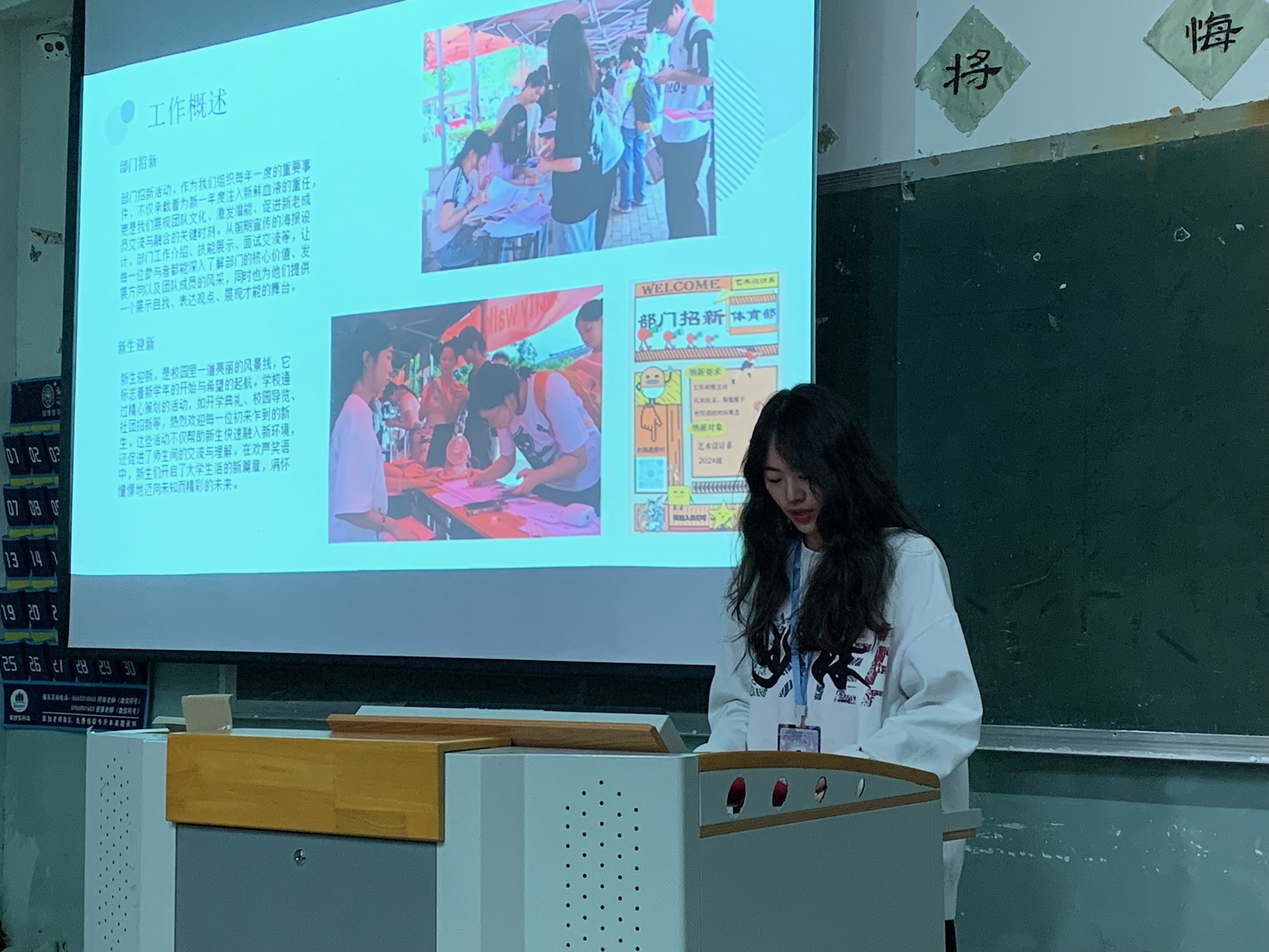 会议上,学生骨干们就各自部门的工作重点、工作成效、特色活动、不足之处等内容进行了逐一概述与剖析,总结了过去一年的工作思路和方式方法,并对未来的工作进行了规划和展望。