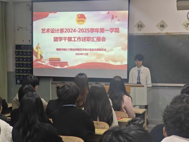 为进一步加强我校学生骨干队伍建设,提升学生骨干责任意识、服务意识与创新意识,促进团学工作的有序开展,2024年12月18日,福建华南女子职业学院艺术设计系总支部委员会于教学楼2-101召开2024-2025学年第一学期团学干部工作述职汇报会。团总支书记吴文佳、团总支组织委员张矣和全体团学组织学生骨干参加会议。